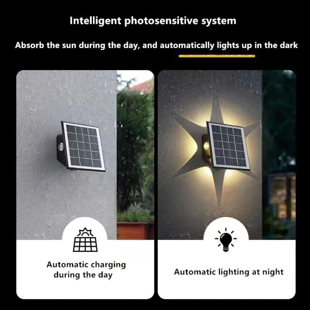 انارة جدارية على شكل نجمة بالطاقة الشمسية سهلة التركيب وبفعالية عالية